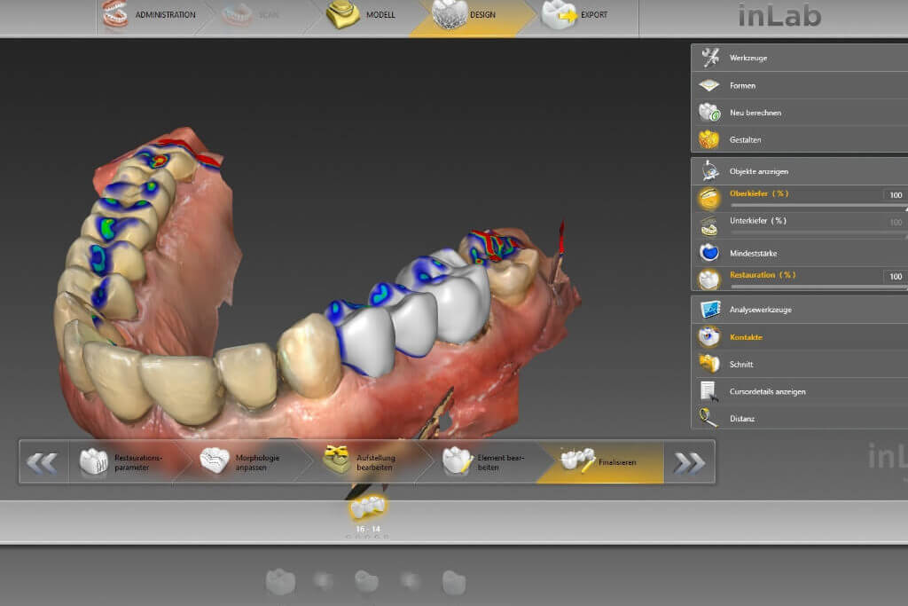 Die stabilisierende Krone planen wir mit dem Primescan 2 (Sirona) – für Sie komplett abdrucklos, digital und ohne Würgereiz.